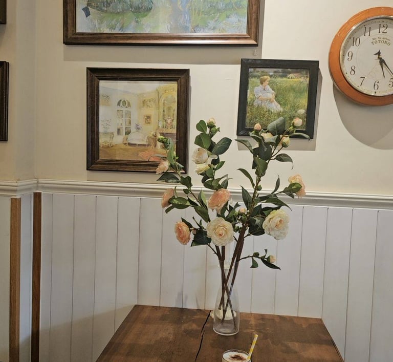 Theo mình, dịch vụ ở quán nhân viên rất thân thiện, quán tuy không quá to nhưng view phong cách trà bánh xinh xắn, decor dễ thương, mang lại bầu không khí ấm áp cùng nhạc bật vừa phải. Là một nơi tuyệt vời để healing khi buồn hoặc để làm việc, thư giãn chill vào lúc rảnh rỗi, dating, cuối tuần.